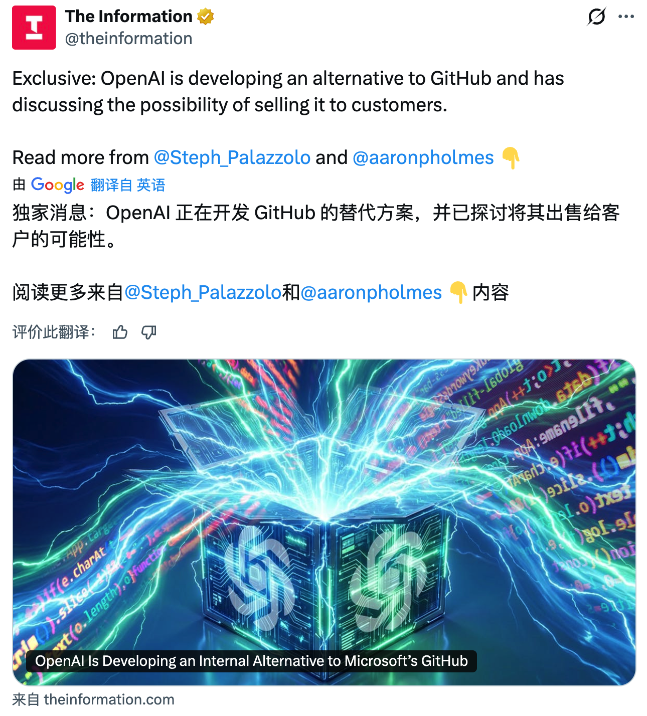 如果 OpenAI 最终将该平台作为商品推出,它不仅仅是技术栈的替代,还可能成为对微软生态的直接竞争——尤其是考虑到微软不仅是 GitHub 的所有者,也是 OpenAI 的重要战略投资者。